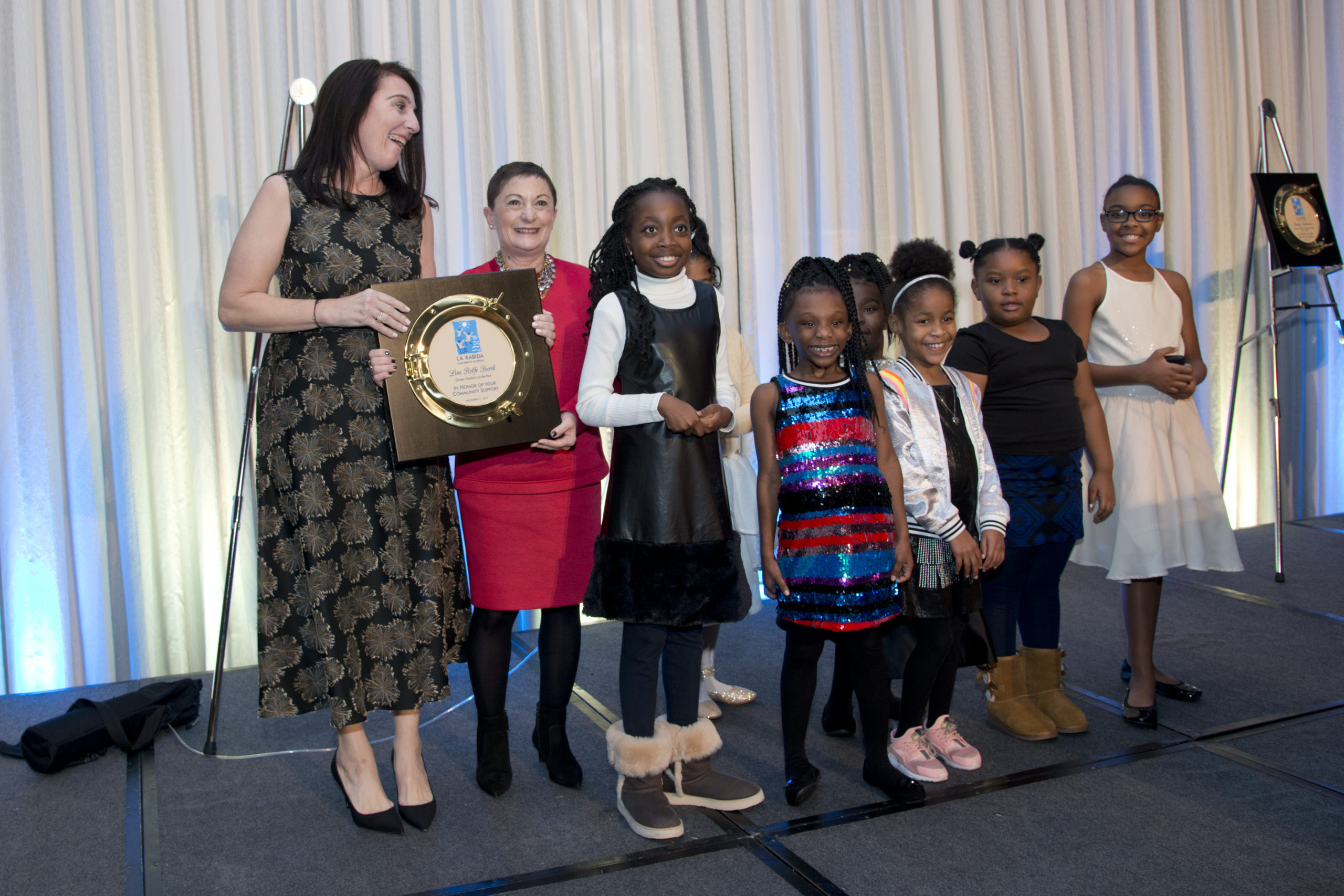 Lisa Rolfe Burik, Owner, Frankie’s on the Park was recognized for her Community Support. For the past 13 years, Lisa has organized the popular Dress Event where Frankie’s on the Park donates dresses brightening the holidays of young girls at La Rabida. Lisa was joined on stage by some of the girls who attended this year’s Dress Event while accepting her award.