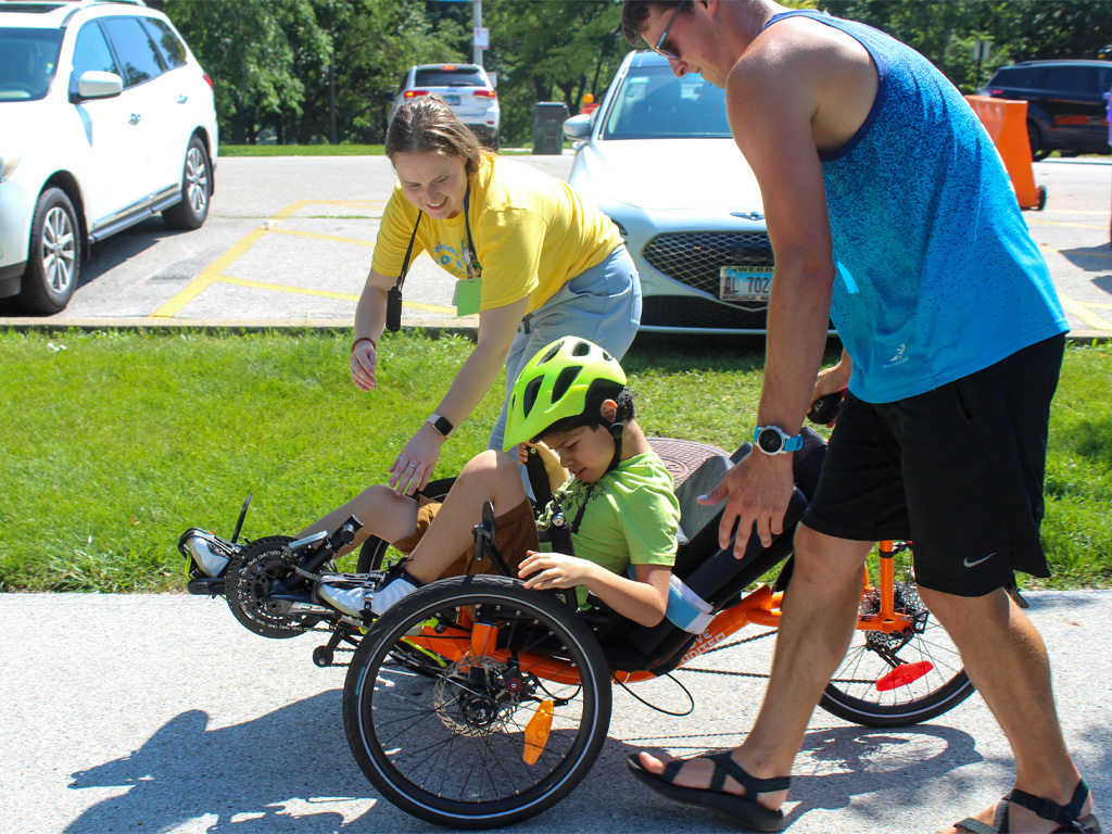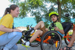 La Rabida is partnered with Dare2Tri this summer to offer adaptive cycling practices. At the beginning of the month, Dare2Tri made a visit to La Rabida’s Outpatient Unit to give some of our patients a chance to ride an adaptive bike.