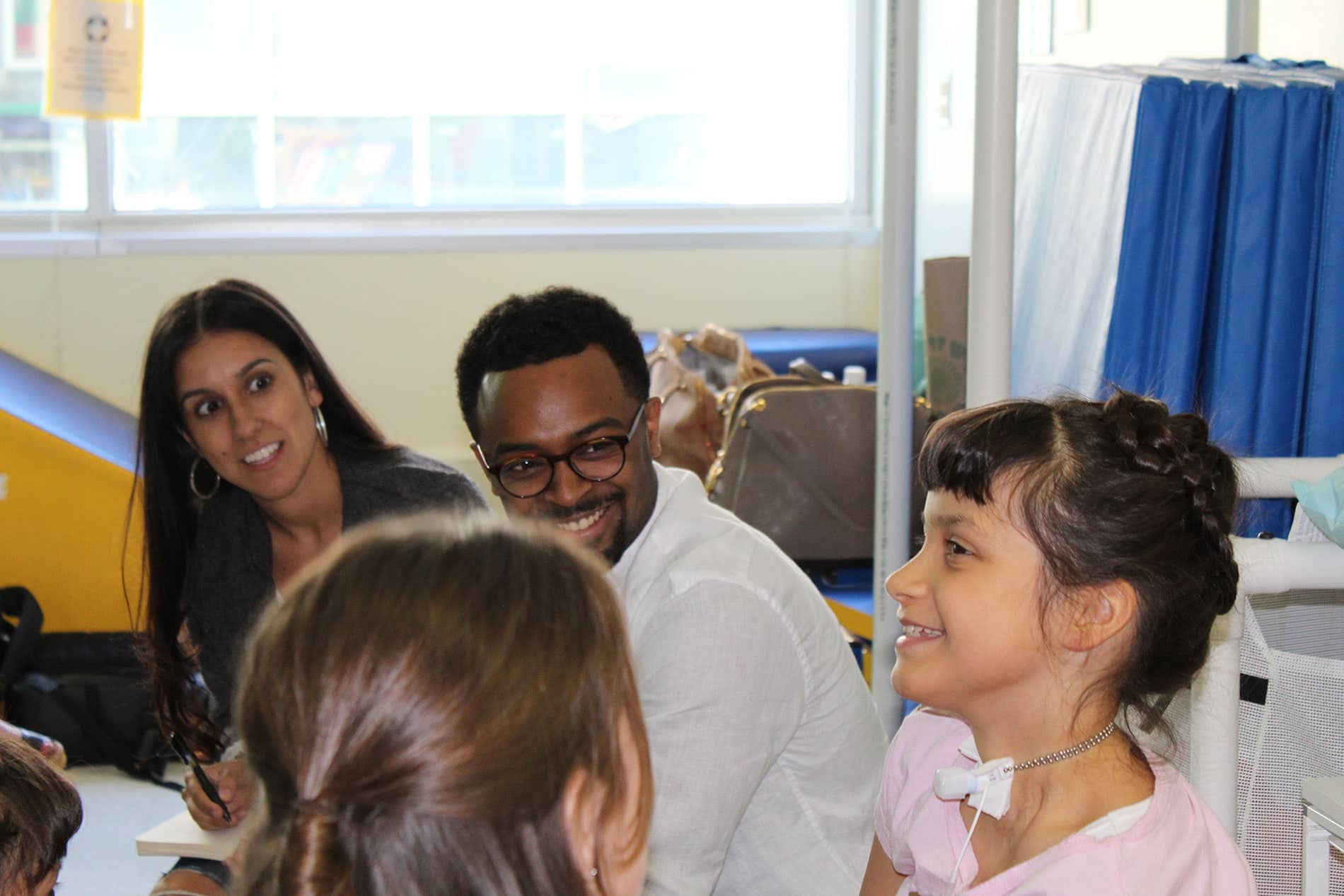 SS La Rabida patient, Elena Perez, was selected by Katie’s Art Project—an organization that connects children with chronic illnesses with artists to “create a lasting legacy through art”. Elena and her two sisters had the opportunity to meet with Chicago Hamilton cast members, Gabriella Sorrentino and Jimmie Jeter to collaborate on writing a song inspired by Elena.