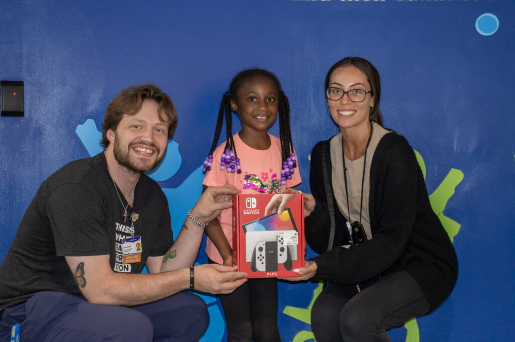 This summer, Journey ran a lemonade stand with her mother Rashada to help pay for a Nintendo Switch for herself. When a generous customer offered to pay the rest of what she needed to earn her own Switch but challenged her to raise even more to do something nice for someone else to pass it on. Journey stuck to it and raised enough to buy TWO of the best Nintendo Switches available – one for herself and one for our patients! “This one has all the games, and you can also use it to play with friends,” Journey said, adding that she’s happy that her donation will help make our patients happy and comfortable while they’re here.