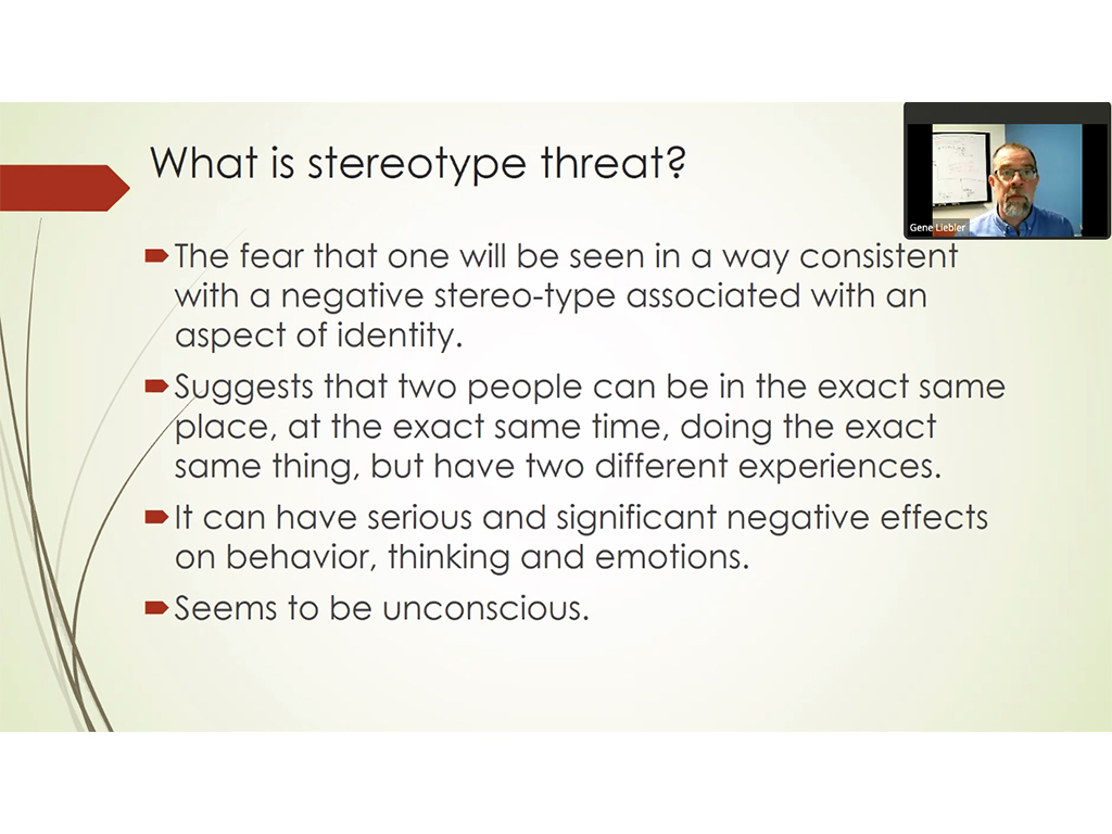 “Stereotype threat is about how people experience their environment. When someone walks into an environment, what is that experience like for them and what are the things that are invisibly present the whole time that have a negative impact on that experience?” explained Gene.
