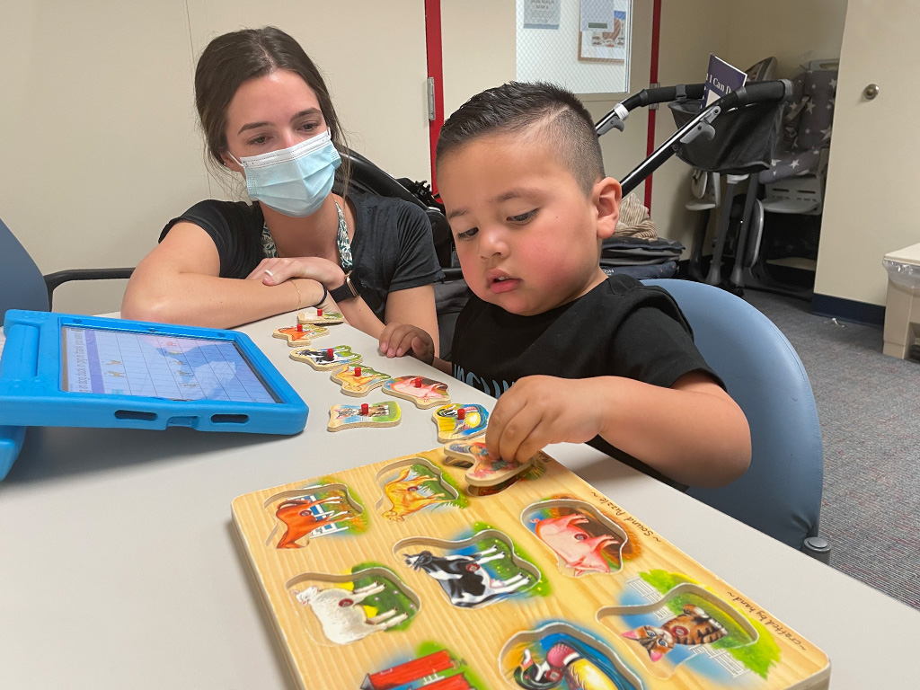 Emmanuel is a happy, outgoing three-year-old La Rabida patient with autism receiving occupational therapy and speech therapy at La Rabida. Thanks to his family and the help of the supportive team around him, Emmanuel is learning to use an assistive communication device and is working on forming different short phrases to let the world know what he’s thinking.