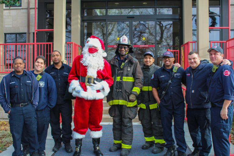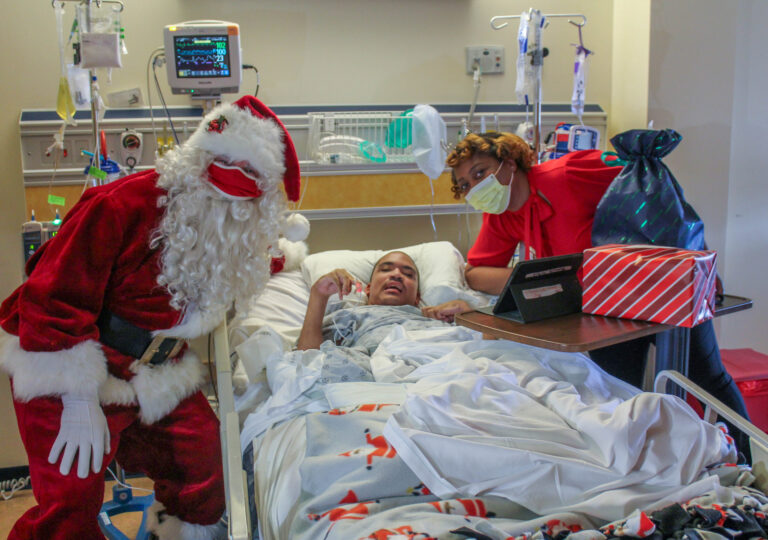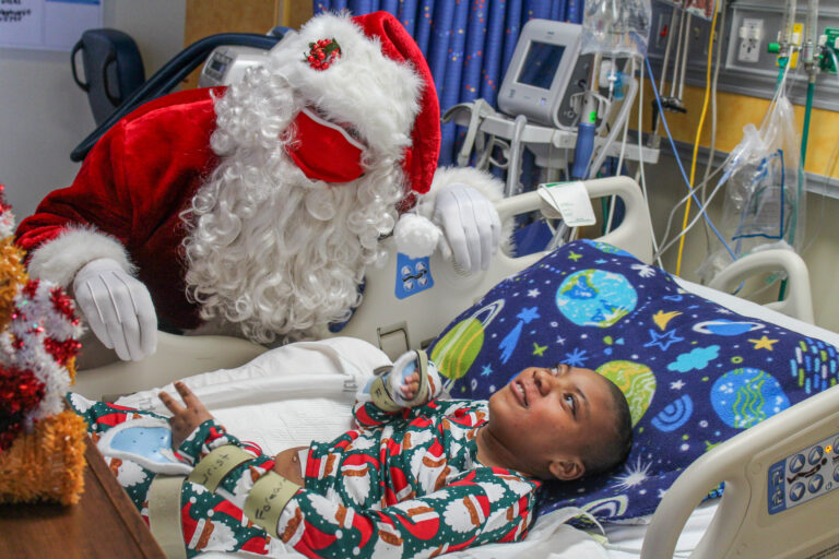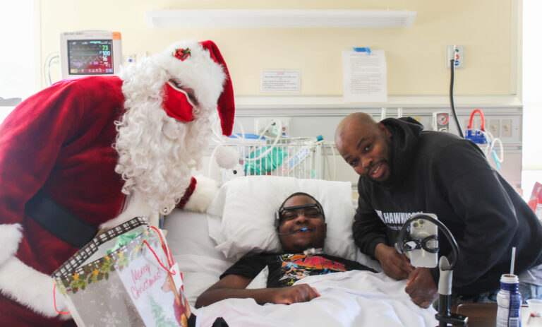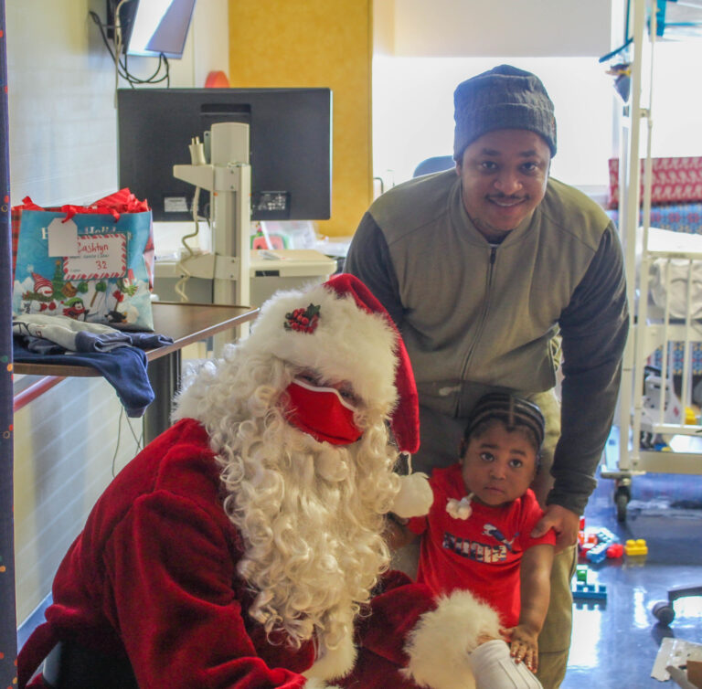Santa Claus made a special visit Christmas morning to deliver presents to patients staying in La Rabida’s inpatient unit. Giving his reindeer a break, Santa rode in on a Chicago Fire Department engine with lights and sirens to spread his holiday cheer!